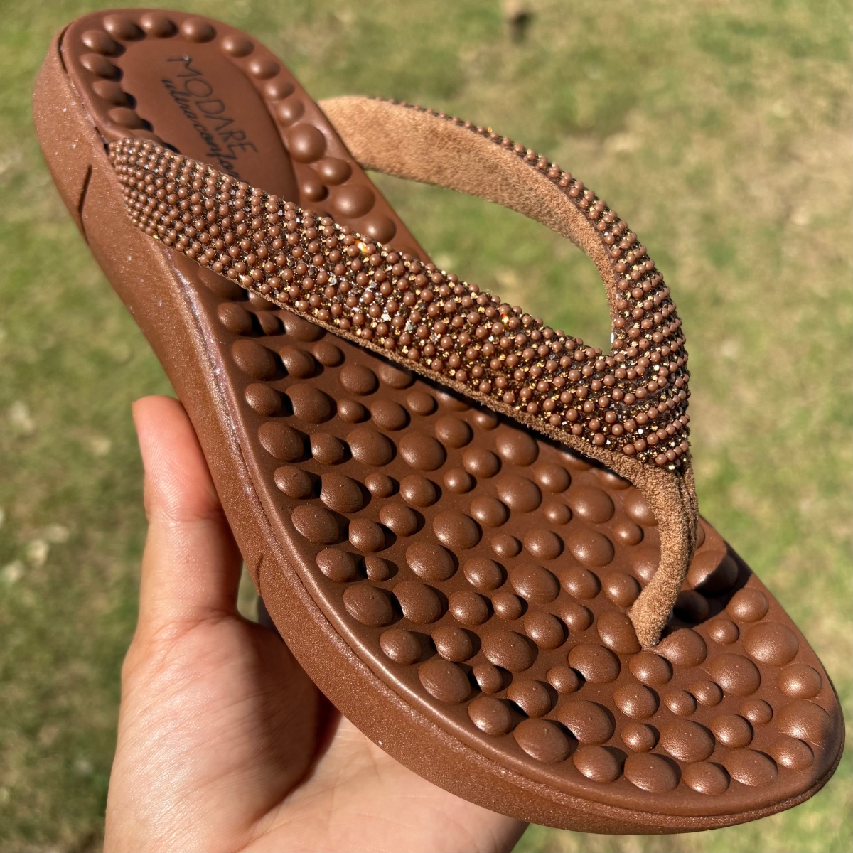 O novo tamanco com plataforma Modare Ultraconforto, conta com detalhe em strass exclusivo, e palmilha anatômica com a tecnologia Reflexsense.
