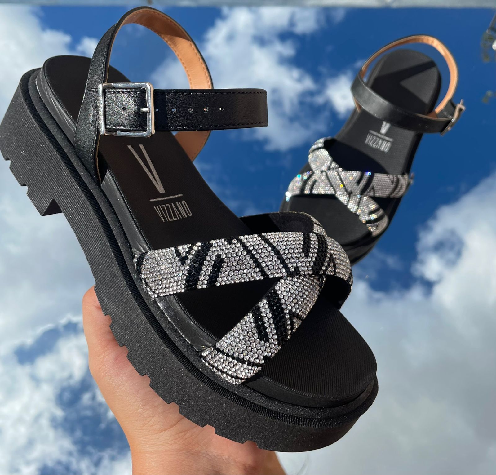 Nome: Sandalia Papete Flat Vizzano Tratorada Feminina Strass