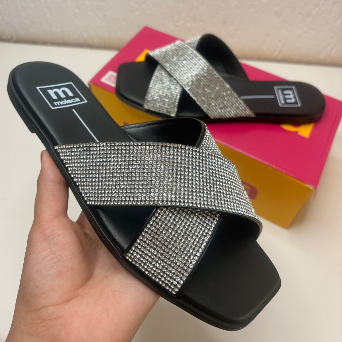 A Rasteira strass Moleca é a escolha ideal para mulheres que buscam aliar conforto e estilo em um só calçado. Com um design que combina um acabamento em brilho e detalhes glamorosos , essa rasteira é perfeita para compor looks leves e sofisticados, ideais para os dias mais quentes. Desenvolvida com materiais de qualidade , a Rasteira oferece uma sensação de bem-estar ao caminhar, garantindo o conforto necessário para o dia a dia. Seu visual delicado e charmoso é perfeito para ocasiões casuais ou para complementar um look elegante e descontraído.