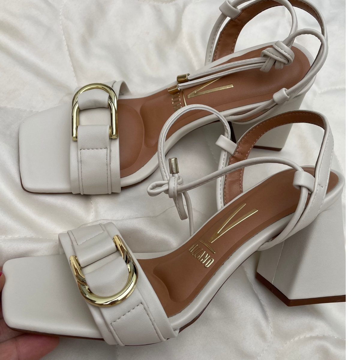 Sandália Feminina Vizzano Salto Alto Bloco 6464.133 Sandália Vizzano confeccionado em material sintético de alta qualidade, possui tira sobre os dedos com detalhe em fivela dourada, dando charme e estilo ao modelo, sandália salto grosso com salto de 8cm, fechamento por amarração no tornozelo. Essa sandália deixa qualquer look super elegante.