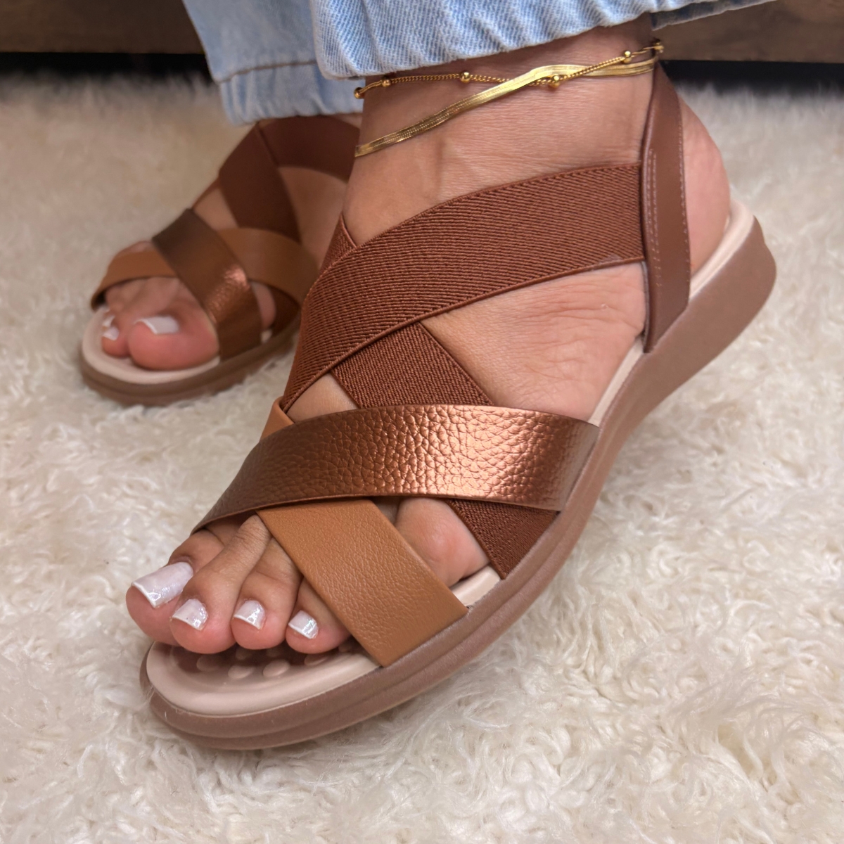 A sandália feminina Flat Modare é ideal para mulheres modernas e que prezam pelo conforto e estilo em todos os momentos. Com design elegante e versátil, ela combina com diversos looks, desde os mais casuais até os mais sofisticados. Seu material de alta qualidade garante durabilidade e resistência, proporcionando uma experiência única de uso. Adquira já a sua e sinta-se linda e confiante a cada passo! Com amortecimento para fascite plantar super macia, esse modelo vai te ajudar a cada passo.