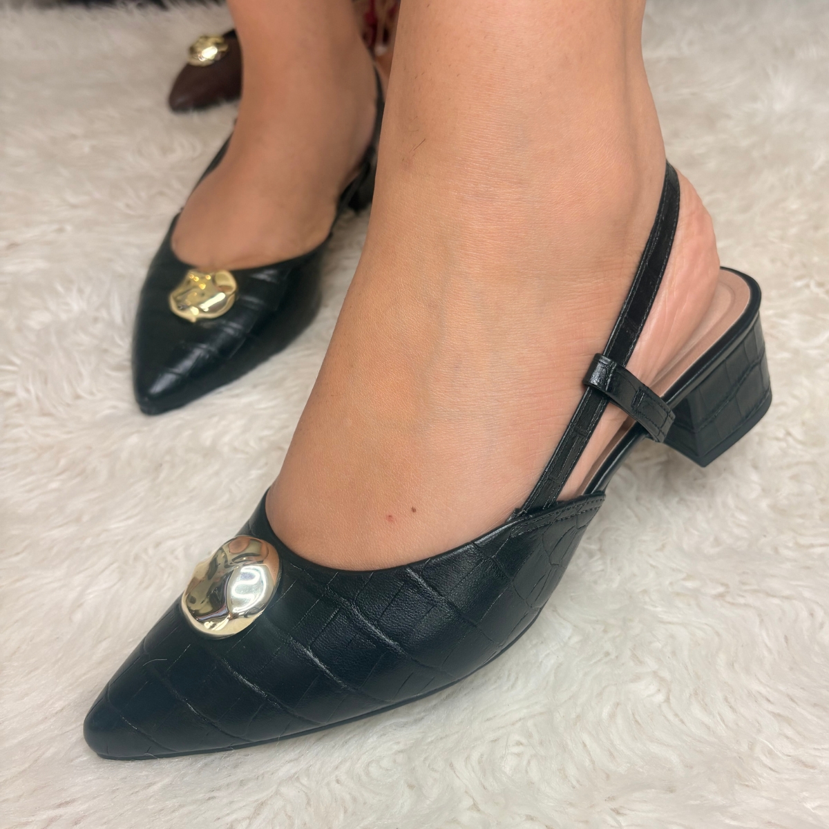 O Slingback Feminino Beira Rio combina elegância e conforto em um design atemporal. Confeccionado em material sintético de alta qualidade, apresenta salto bloco de 4 cm que oferece equilíbrio e praticidade no uso diário. O modelo slingback com tira ajustável garante ajuste perfeito, enquanto o bico fino e o detalhe metalizado no cabedal adicionam um toque sofisticado ao visual. Ideal para compor produções clássicas e femininas, é perfeita para o trabalho ou momentos casuais com muito estilo e conforto.