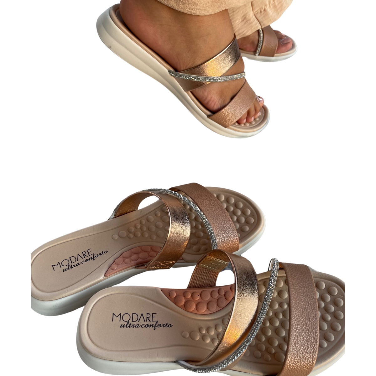 O Tamanco Feminino Modare é confeccionado com material sintético, de altíssima qualidade e durabilidade. Seu cabedal é em formato de tiras finas e confortáveis, uma das tiras conta com detalhes em brilho, trazendo delicadeza e estilo para esse calçado da Modare. Sua palmilha é macia e acolchoada, oferecendo conforto excepcional a cada passo para seu dia a dia, enquanto o salto médio garante uma elevação, realçando a feminilidade em qualquer visual, é uma fusão sofisticada de elegância e conforto.